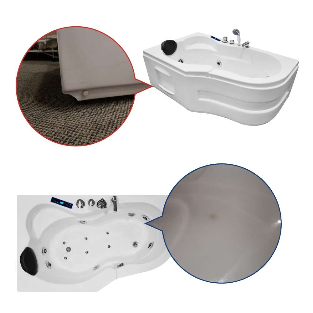 UWAGA: WANNA POWYSTAWOWA (NIE UŻYTKOWANA) POSIADA PRZEBARWIENIE NA DNIE WANNY ORAZ PĘKNIĘCIE ROGU AKRYLU WIDOCZNE NA ZDJĘCIACH PONIŻEJ I W GALERII PRODUKTU, PROSIMY O PRZEMYŚLANE ZAKUPY.