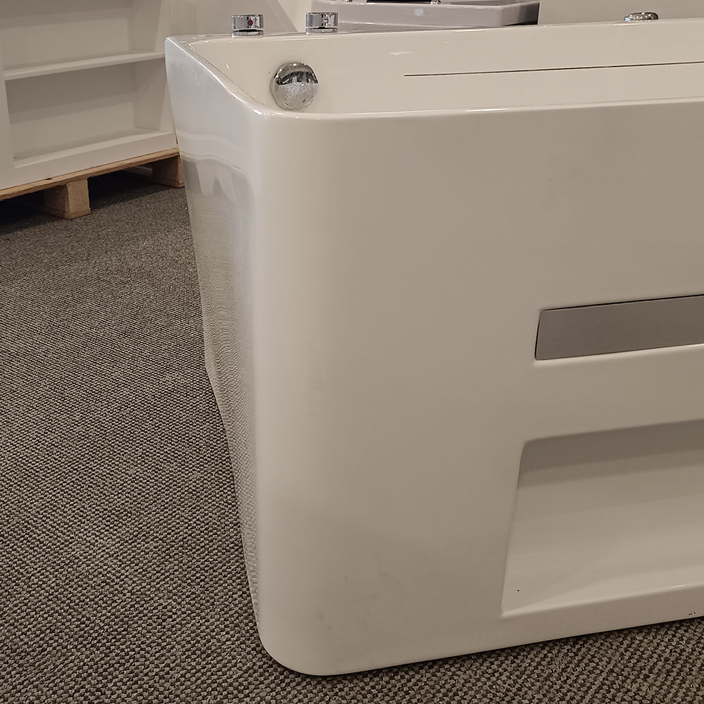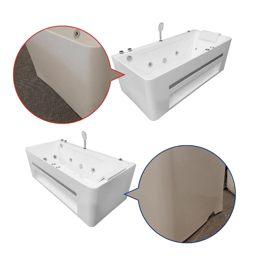 UWAGA: Uszkodzenia wanny powstały podczas transportu przez kuriera. W wyniku tego obudowa uległa deformacji, a tylny rant jest lekko nachylony. Dodatkowo obudowa po lewej i prawej stronie posiada widoczne wgniecenia, zgodnie ze zdjęciami zamieszczonymi poniżej oraz w galerii produktu. Wanna pozostaje w pełni sprawna, a wszystkie mechanizmy działają prawidłowo. Prosimy o przemyślany zakup.