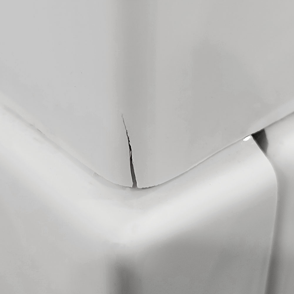 Element uszkodzonego akrylu zostanie wzmocniony i sklejony przed wysyłką, z użyciem specjalistycznego kleju oraz żywicy.