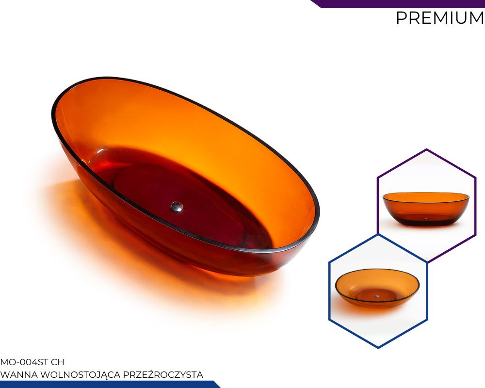 Wanny wolnostojące z serii PREMIUM to połączenie nowoczesnej formy, lekkości i wyjątkowego efektu wizualnego. Wanny wykonane z przeźroczystej, kolorowej żywicy syntetycznej zachwycają grą światła i głębią barw, tworząc niepowtarzalny element wystroju każdej łazienki. Solidne wykonanie, ergonomiczny kształt i wysoka odporność materiału gwarantują komfort oraz trwałość na lata. To idealny wybór dla osób, które pragną wprowadzić do swojej przestrzeni odrobinę luksusu, nowoczesności i artystycznego charakteru.