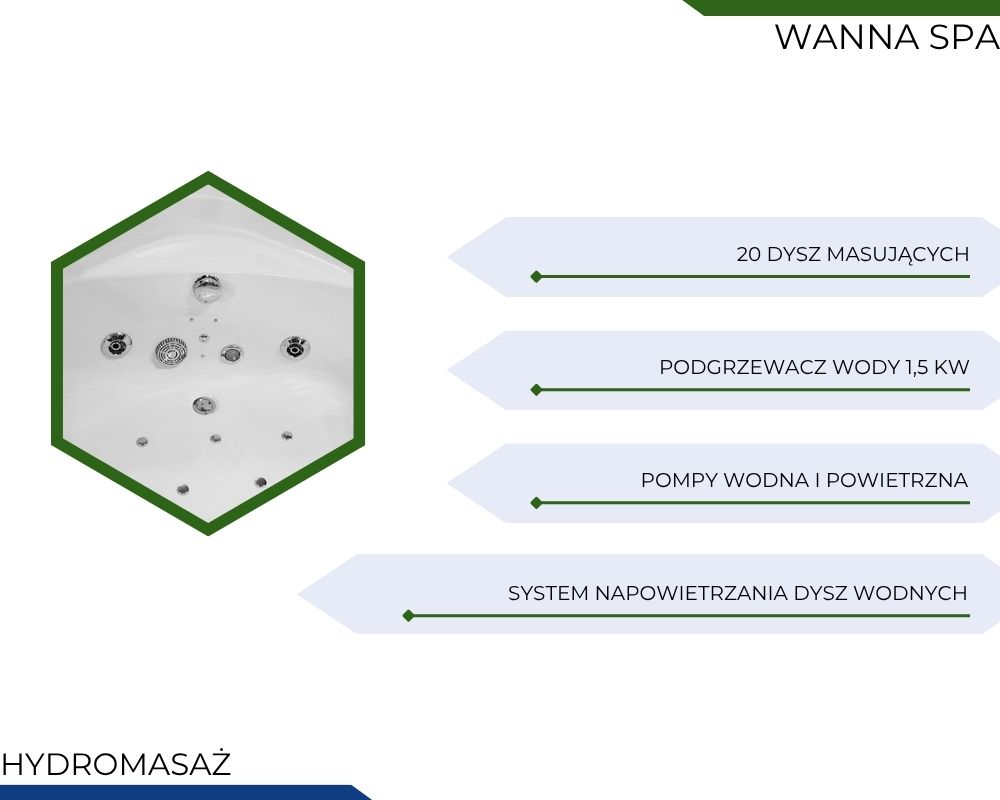 Wanny łazienkowe SPA z hydromasażem to doskonałe połączenie relaksu, nowoczesnej technologii i eleganckiego designu, które pozwala stworzyć w domowej łazience prawdziwą strefę wellness. Zaawansowany system dysz wodnych i powietrznych zapewnia przyjemny, odprężający masaż, pomagający rozluźnić mięśnie i zredukować napięcie po intensywnym dniu. Starannie zaprojektowana konstrukcja wanny gwarantuje wygodę podczas kąpieli, a wysokiej jakości materiały zapewniają trwałość oraz odporność na codzienne użytkowanie. To rozwiązanie dla osób, które chcą połączyć komfort klasycznego kąpielowego relaksu z funkcjonalnością nowoczesnego hydromasażu.