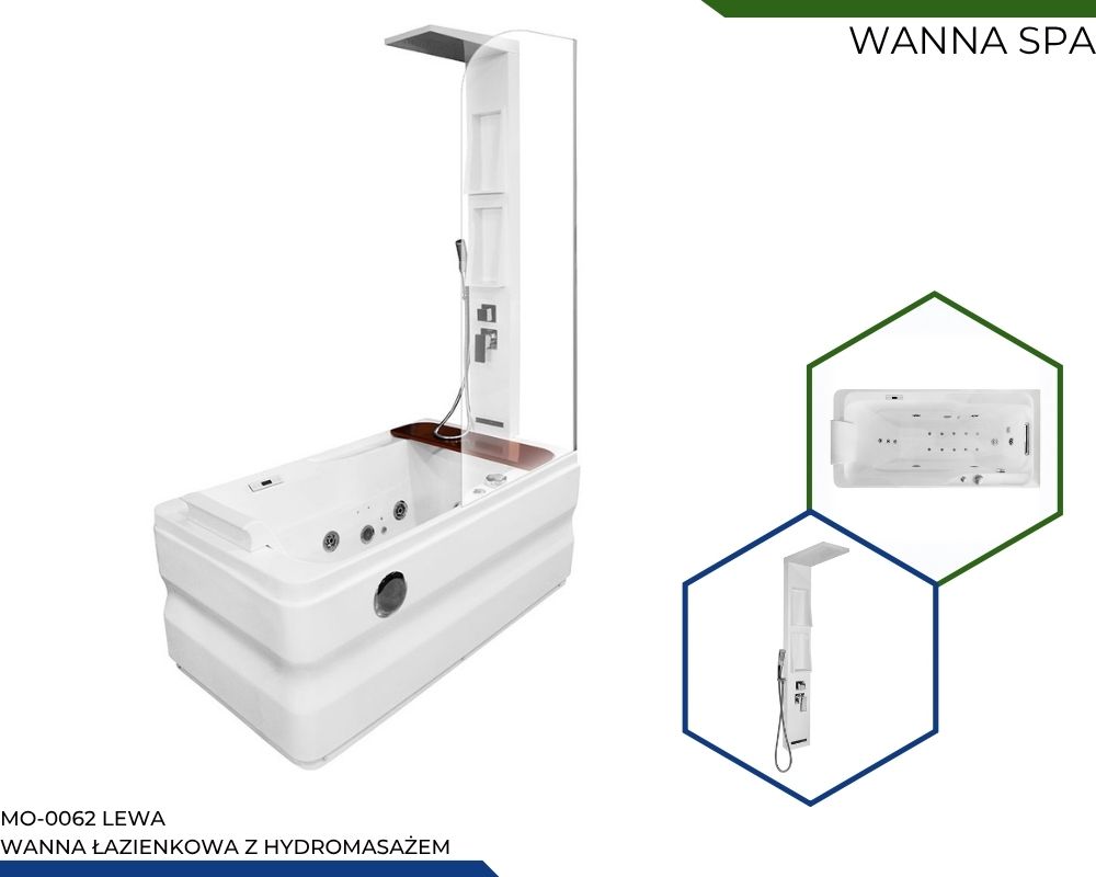 MO-0062-170 LEWA Wanna łazienkowa SPA z hydromasażem i parawanem 170X78X58CM