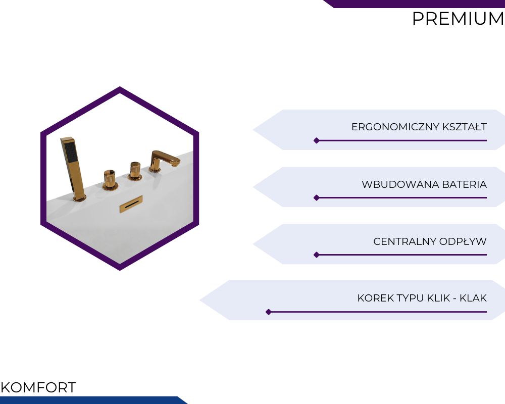 MO-1014D Wanna wolnostojąca z baterią złotą 170X80X59CM