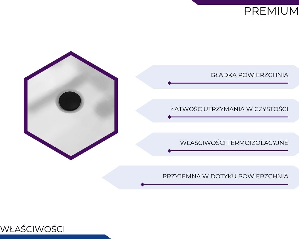 Specyfika powierzchni produktów serii PREMIUM sprzyja bezproblemowemu utrzymaniu higieny i czystości wanny. Zachowanie estetycznego wyglądu powłoki nie jest trudne oraz nie zajmuje zbyt dużo czasu. Gładkość akrylu, jego najwyższa jakość oraz brak trudno dostępnych zakamarków i idealnie dopracowane krawędzie sprawiają, że utrzymanie wanny w czystości jest szybkie, łatwe i nie stwarza problemów.