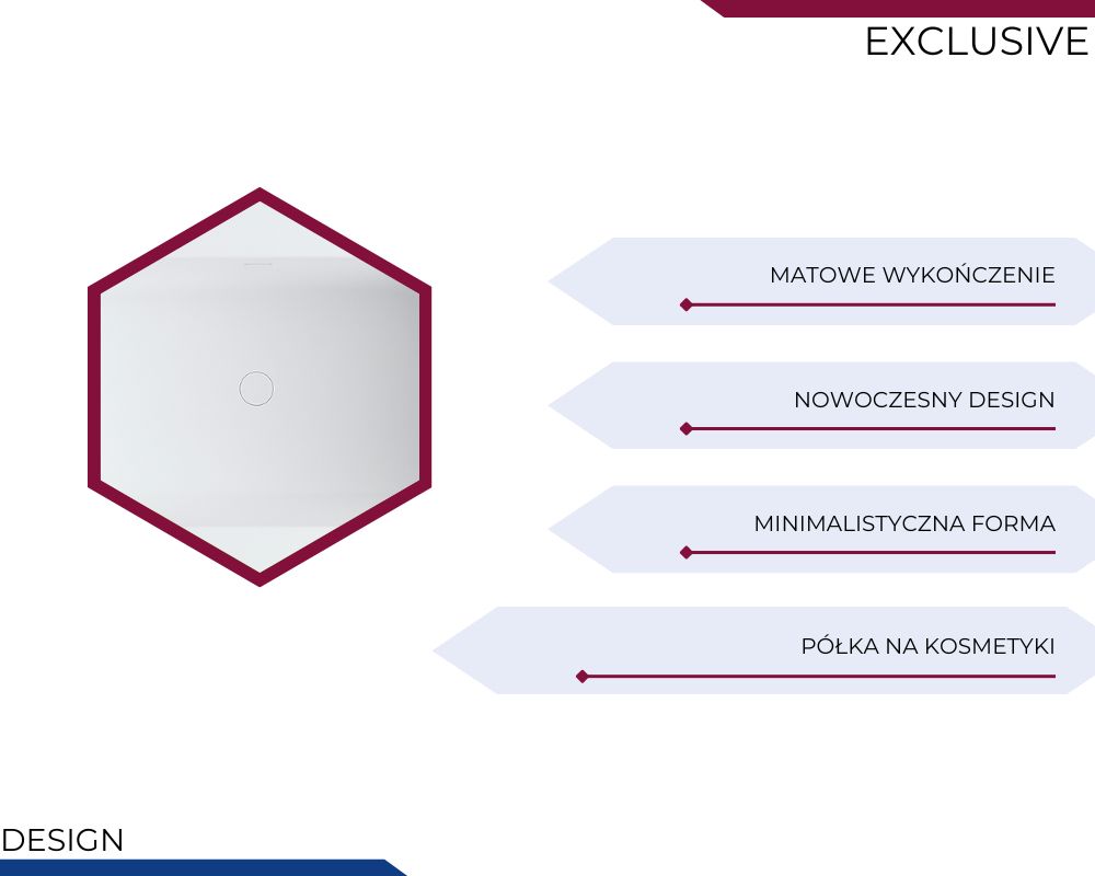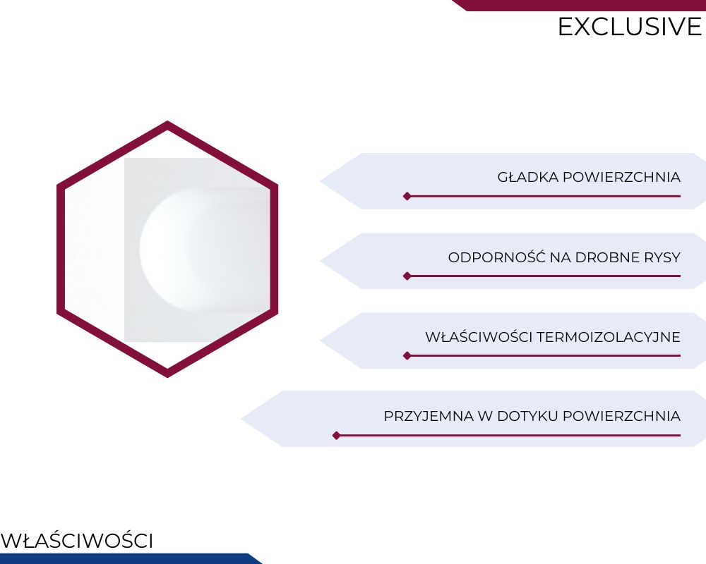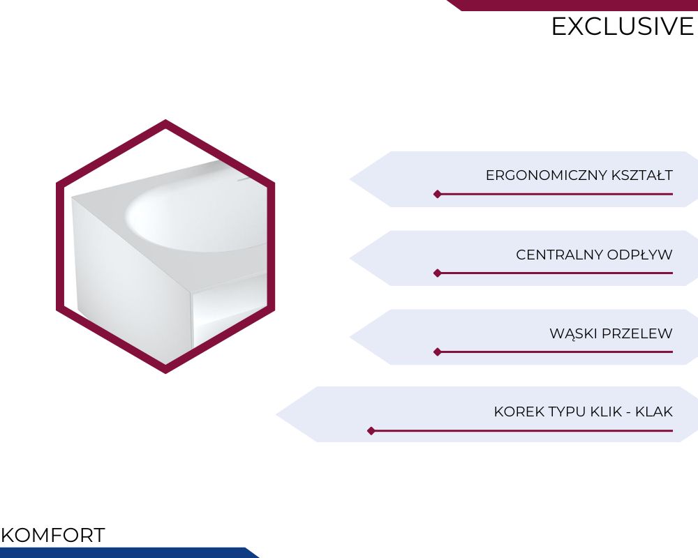 Seria EXCLUSIVE to kwintesencja luksusu i nowoczesnego wzornictwa. Wanny wykonane z matowego kamienia syntetycznego zachwycają elegancją, trwałością i dopracowanym w każdym detalu designem. Połączenie kamienia wzmocnionego żywicą i pigmentem nadaje im subtelny, satynowy połysk i szlachetny wygląd, który podkreśla ich ekskluzywny charakter. To propozycja dla osób, które cenią połączenie estetyki, komfortu i prestiżu w wyjątkowej formie stworzonej z myślą o nowoczesnych wnętrzach.