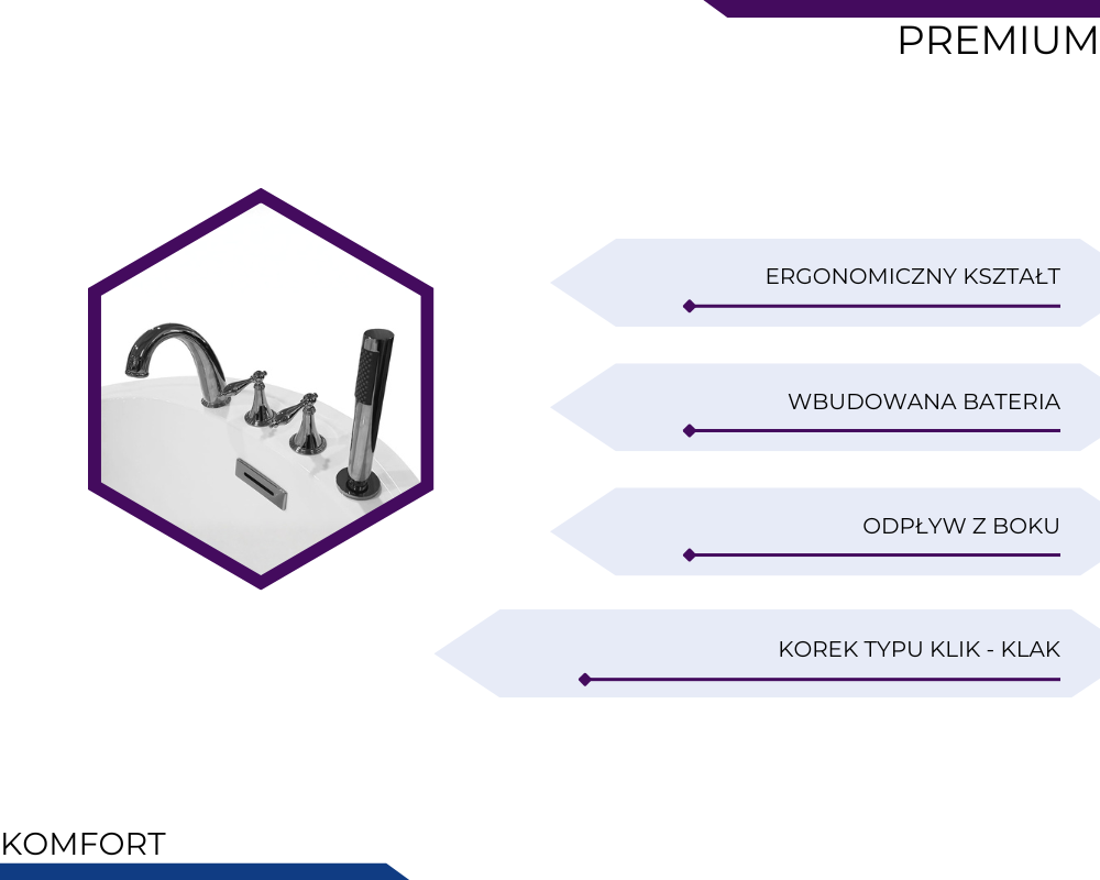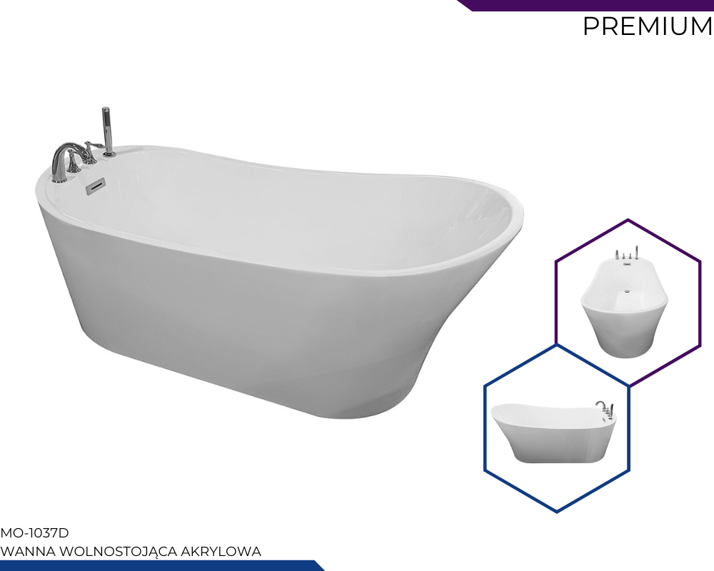 MO-1037D Wanna wolnostojąca z baterią chromowaną 170X80X72CM