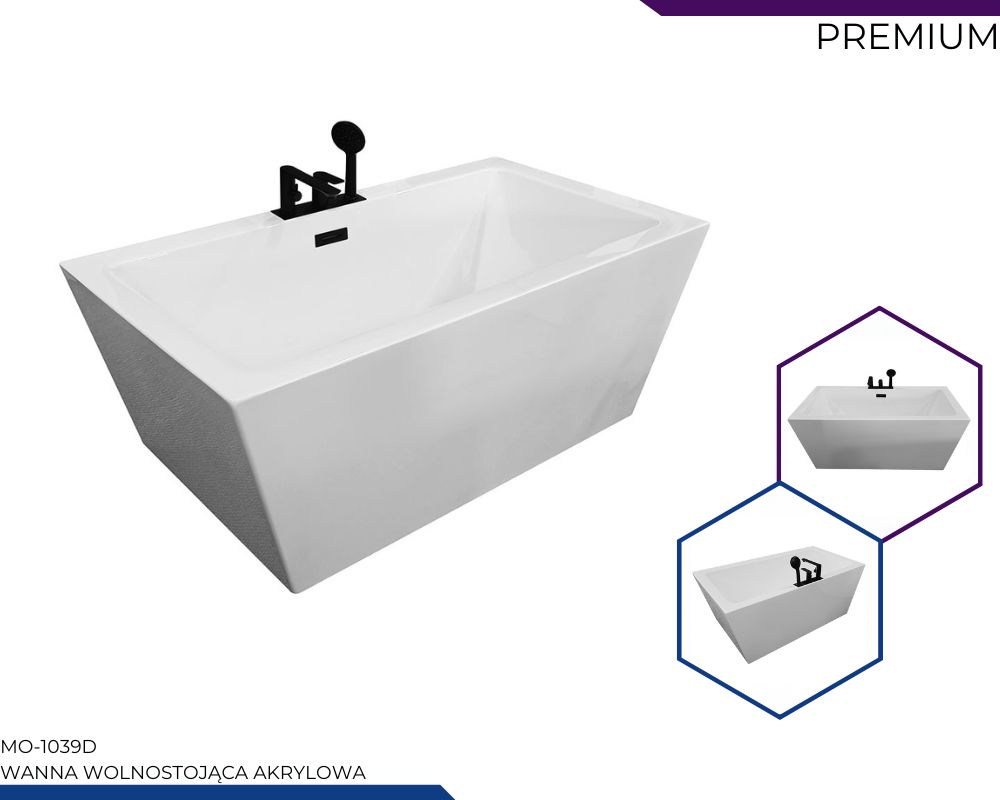 MO-1039D Wanna wolnostojąca przyścienna z baterią czarną 152X80X58CM