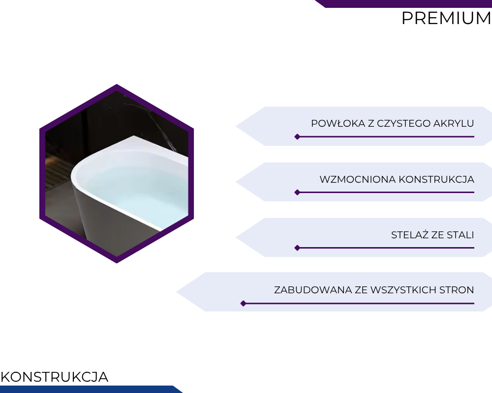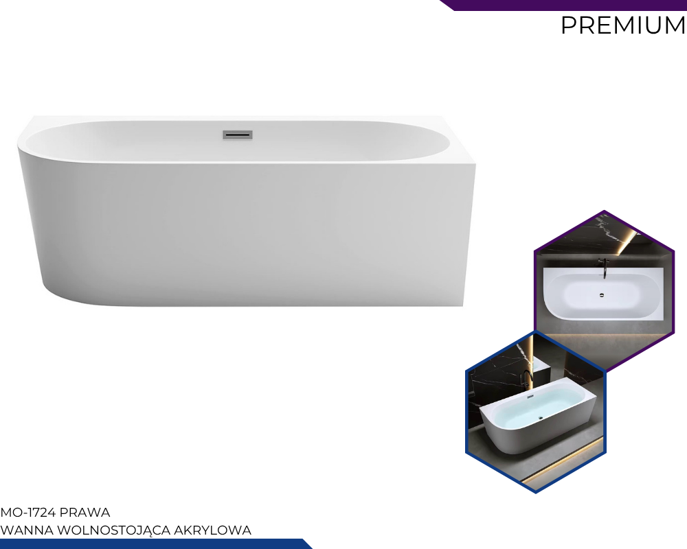 MO-1724-160 PRAWA Wanna wolnostojąca przyścienna 160X75X59CM