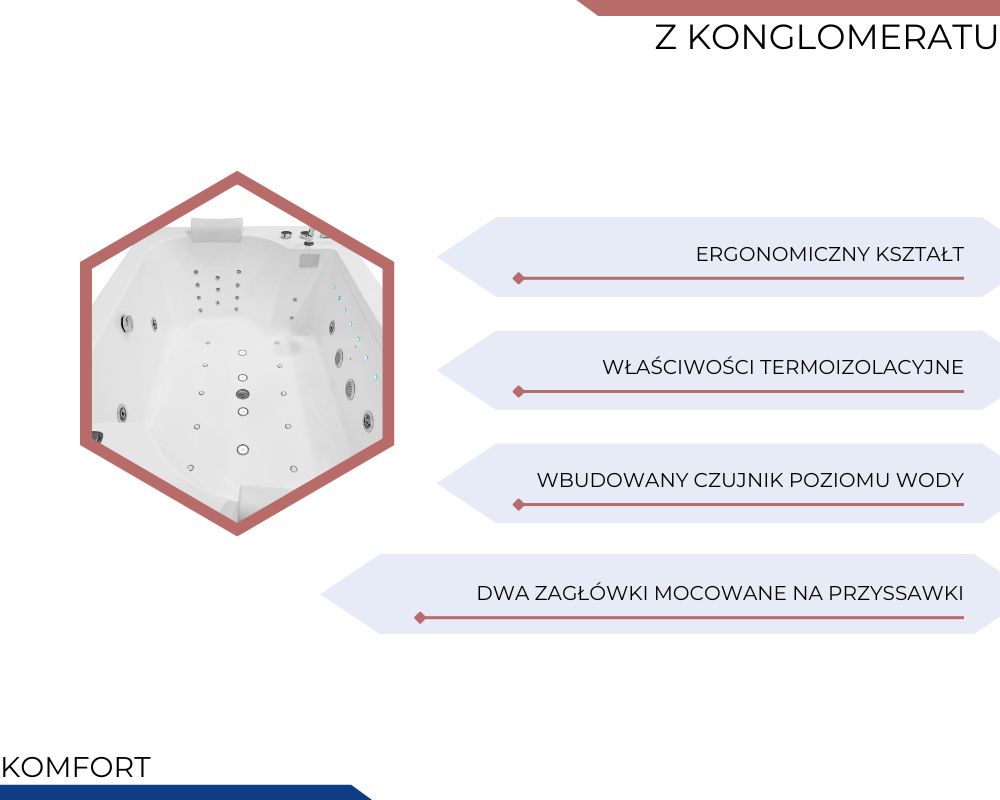Wanny z konglomeratu to synonim elegancji, trwałości i komfortu. Wyróżniają się nowoczesnym designem, gładką, satynową powierzchnią i wyjątkowymi właściwościami użytkowymi. Dzięki połączeniu kamienia naturalnego i żywicy są niezwykle odporne na zarysowania, a ich twarda struktura doskonale sprawdza się nawet w intensywnie użytkowanych łazienkach. Świetna izolacja cieplna sprawia, że woda długo utrzymuje przyjemną temperaturę, a gładka, nieporowata powierzchnia ułatwia czyszczenie i zapewnia higienę. Wanny te łączą estetykę z funkcjonalnością, tworząc domową strefę relaksu, w której każdy detal został dopracowany z myślą o komforcie i trwałości.