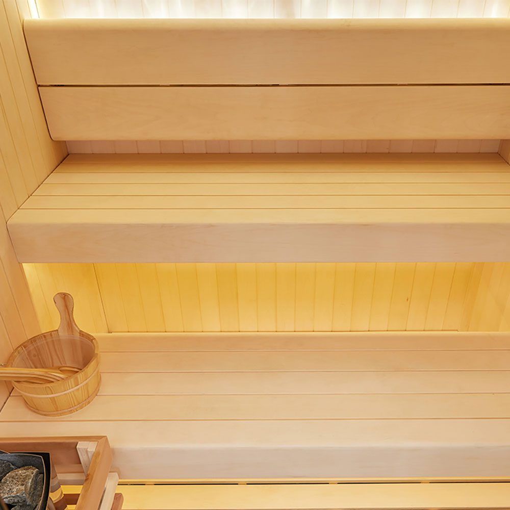 MO-EA4 LUX Sauna sucha z piecem HARVIA 8 kW, kamieniem solnym i izolacją ścian 180X180X200CM