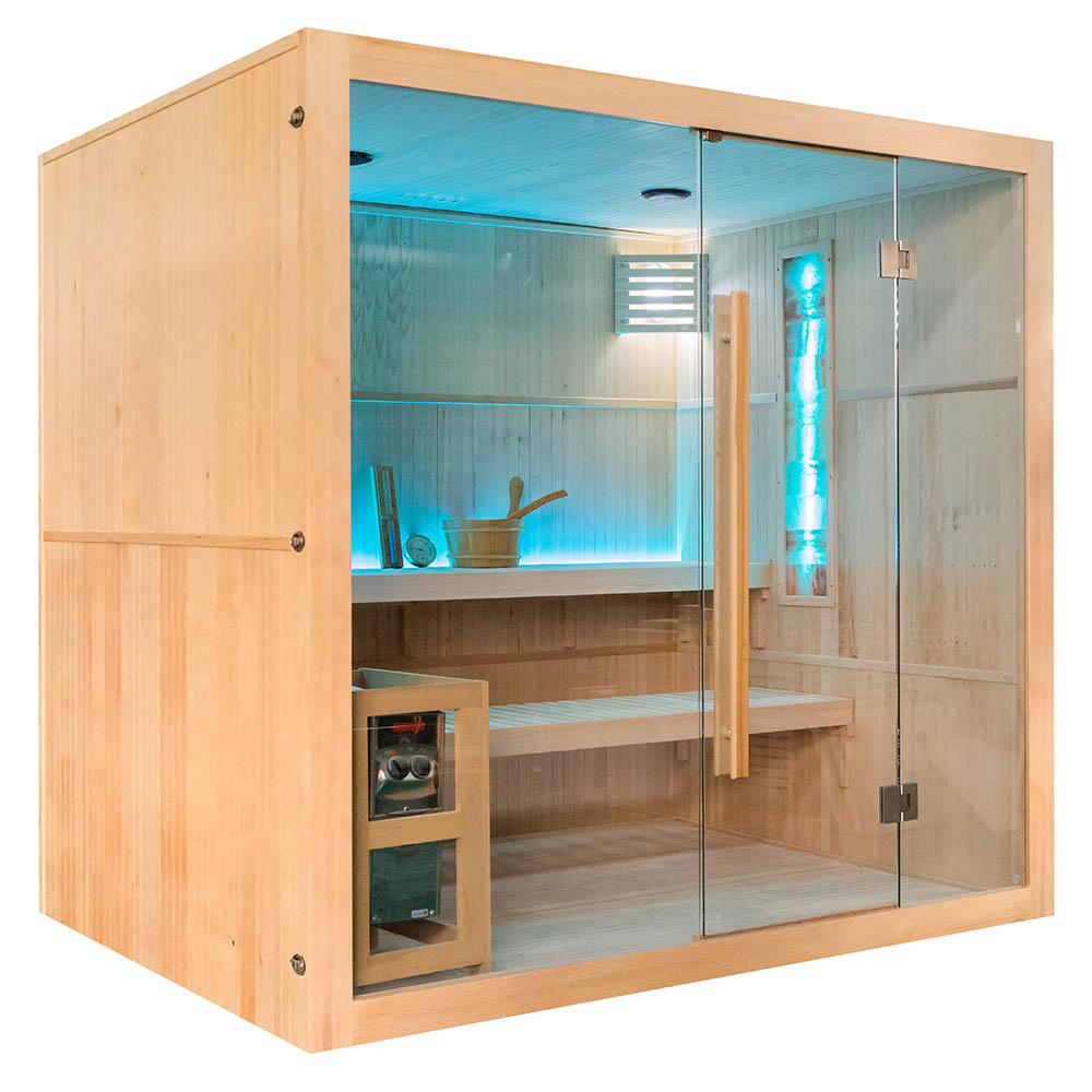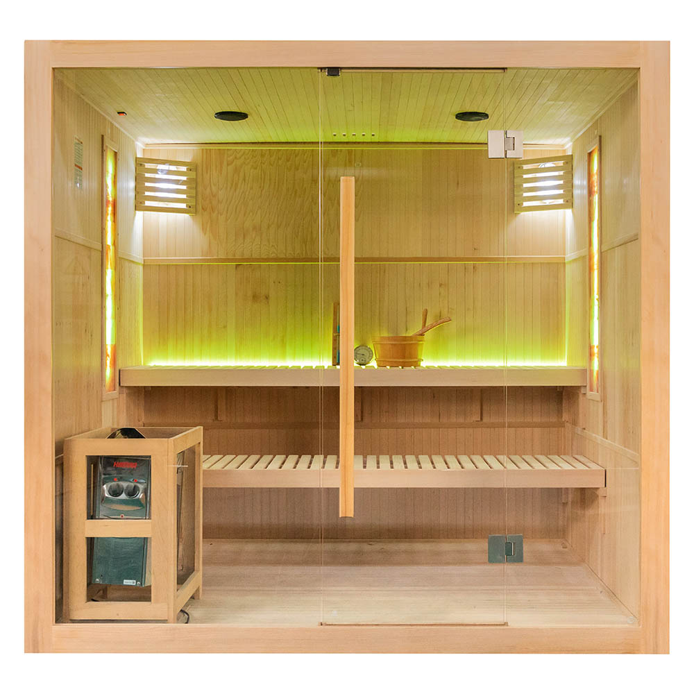 MO-EA5S LUX Sauna sucha z piecem HARVIA 8 kW kamieniem solnym i izolacją ścian 210X160X200CM