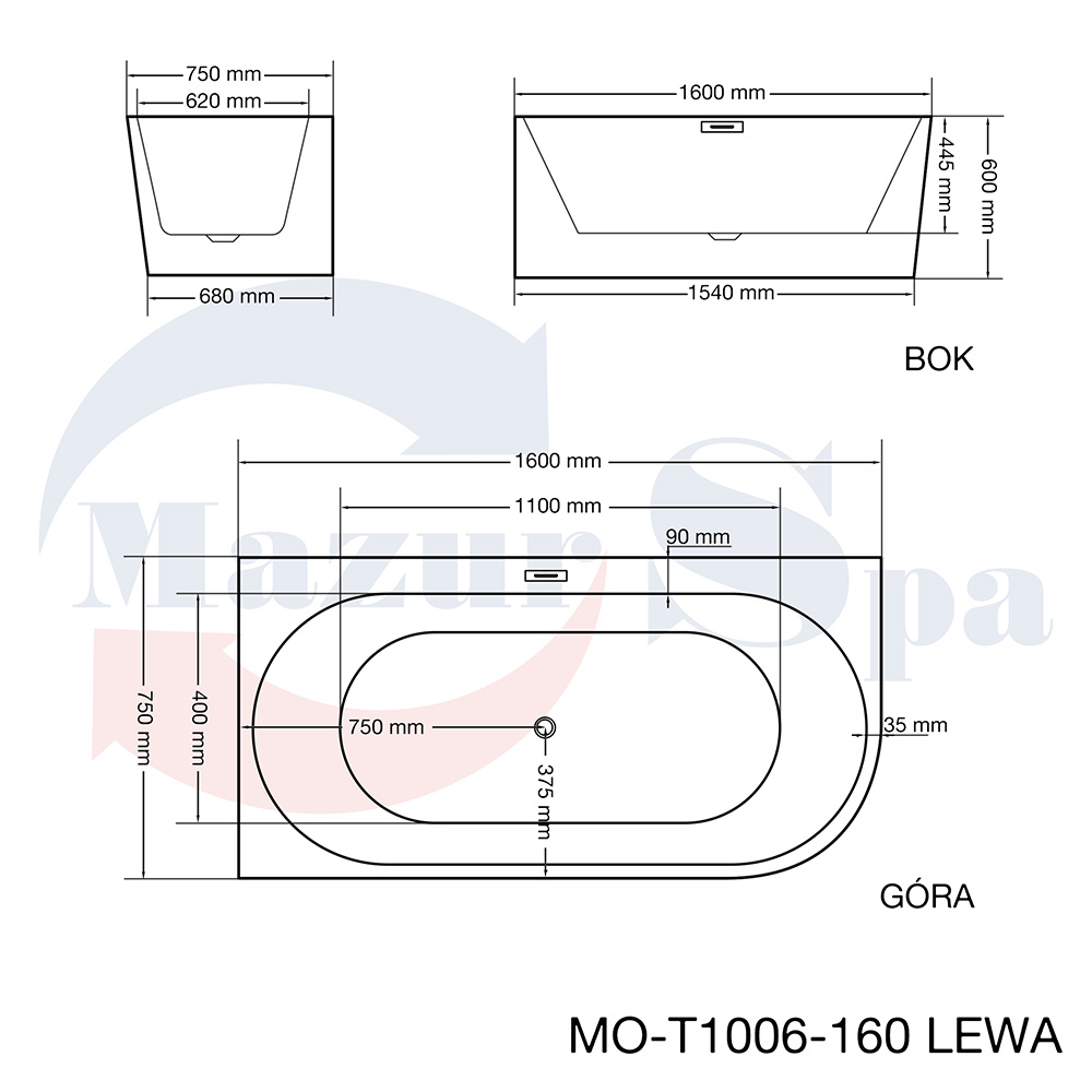 MO-T1006-160 LEWA Wanna wolnostojąca przyścienna 160X75X60CM