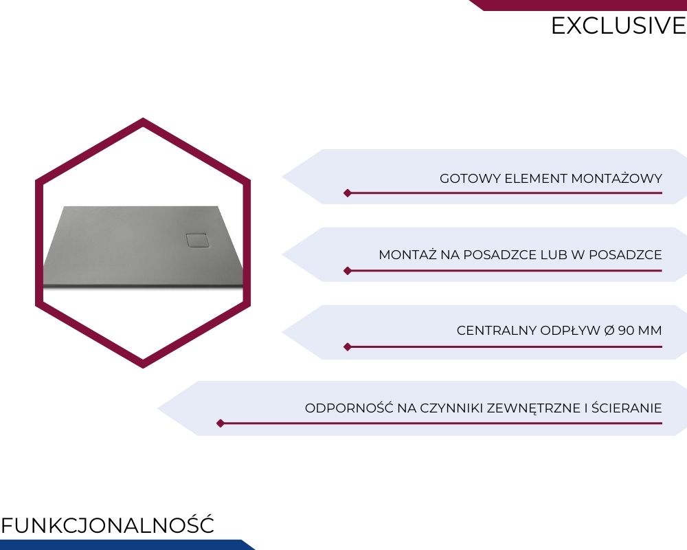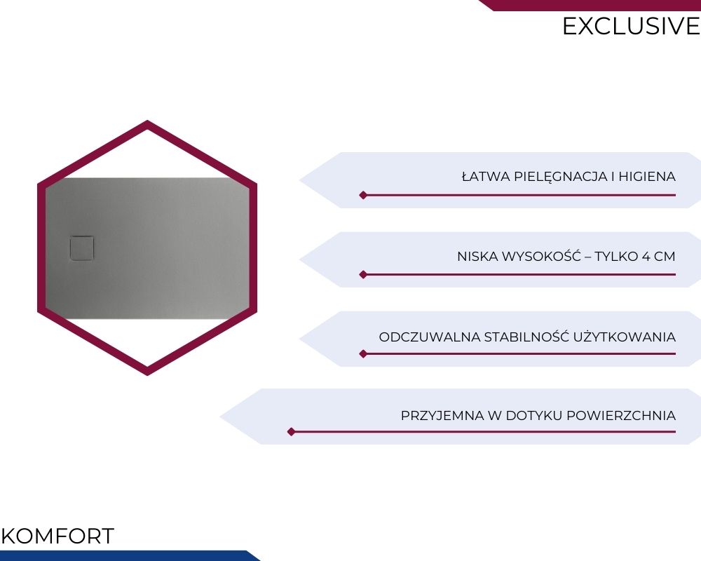 Brodzik antypoślizgowy: tak (struktura kamienna o właściwościach antypoślizgowych)