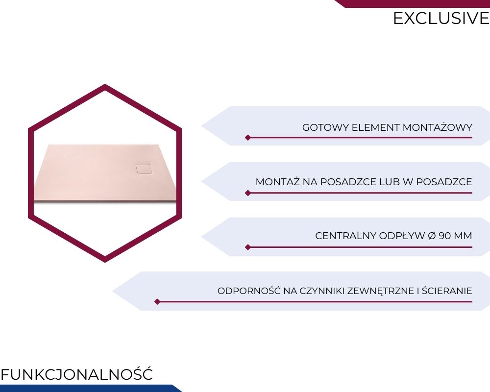 Brodzik antypoślizgowy: tak (struktura kamienna o właściwościach antypoślizgowych)