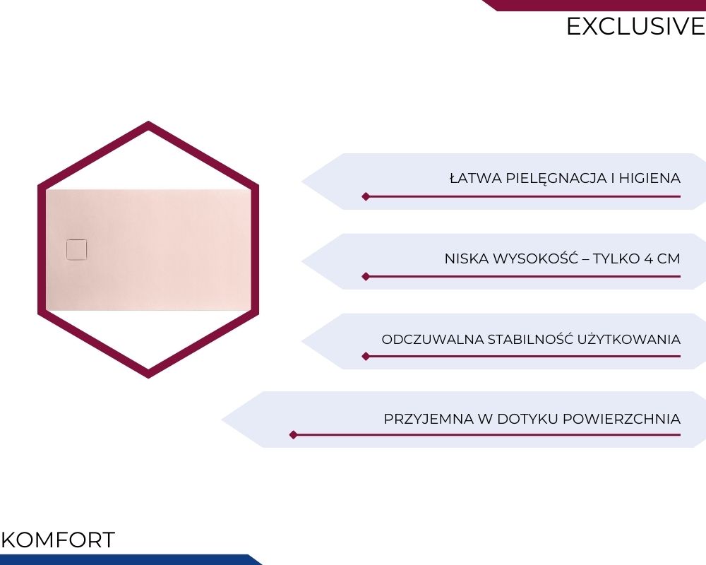 W przeciwieństwie do popularnych brodzików typu SMC, które są lekkimi formami z tworzywa o strukturze kamienia, ten model wykonany jest z rzeczywistego kompozytu kamiennego. Konstrukcja brodzika jest pełna, bez pustych przestrzeni pod powierzchnią użytkową. Całość została wypełniona masą kamienną, co przekłada się na wyjątkową stabilność, wysoką nośność i brak uginania się podczas użytkowania.