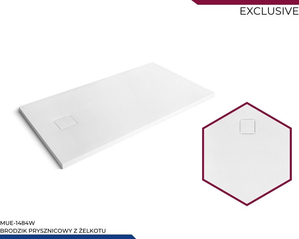 MUE-1484W Brodzik prysznicowy prostokątny kamienny z ścieralną powłoką 140X80X4CM