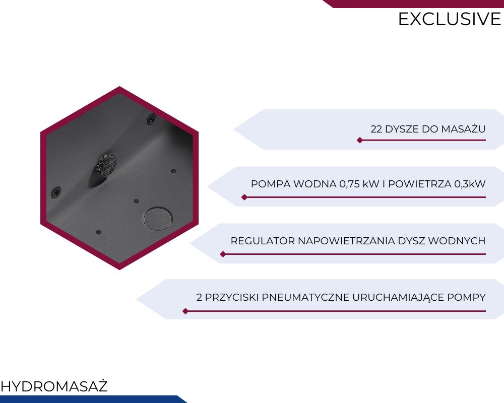 MUE-A005B Wanna wolnostojąca przyścienna SPA z hydromasażem 170X80X63CM