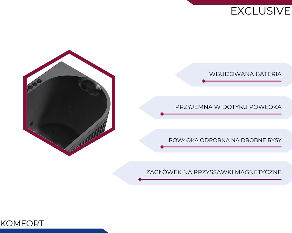 Uwaga: Zagłówek widoczny na zdjęciach ma charakter dekoracyjny i nie stanowi elementu oferowanego produktu. Istnieje możliwość dokupienia kompatybilnego zagłówka jako wyposażenia dodatkowego, dostępnego w opcjach dodatkowych.