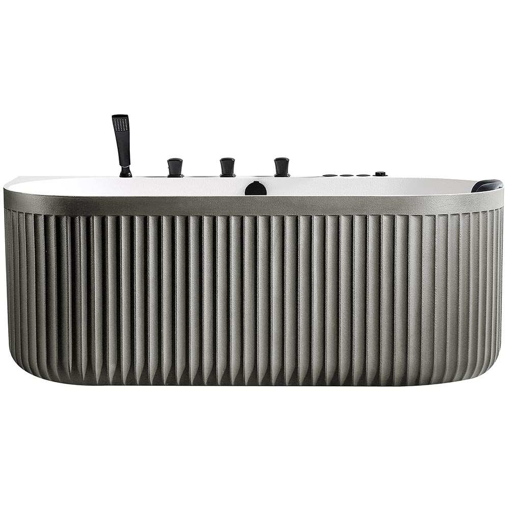 Wanna wyposażona jest w wbudowaną baterię, wylewkę oraz słuchawkę prysznicową, co zapewnia maksymalną wygodę i pełną funkcjonalność podczas codziennego użytkowania. Zintegrowany zestaw umożliwia precyzyjne sterowanie temperaturą i strumieniem wody. To eleganckie i praktyczne rozwiązanie, które podkreśla nowoczesny charakter wanny i podnosi komfort każdej kąpieli.