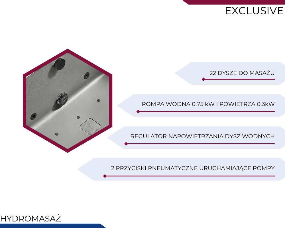 MUE-D005G Wanna wolnostojąca przyścienna SPA z hydromasażem 170X75X60CM