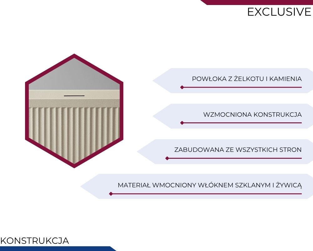 Seria EXCLUSIVE to najwyższej jakości materiały, innowacyjne rozwiązania, a także wyjątkowy element wystroju każdej łazienki, który spełnia oczekiwania najbardziej wymagających użytkowników. Wybierając wannę wolnostojąca z kolekcji EXCLUSIVE, inwestujesz w luksusowy komfort, który będzie służył latami, zachowując swoją estetyczną formę.