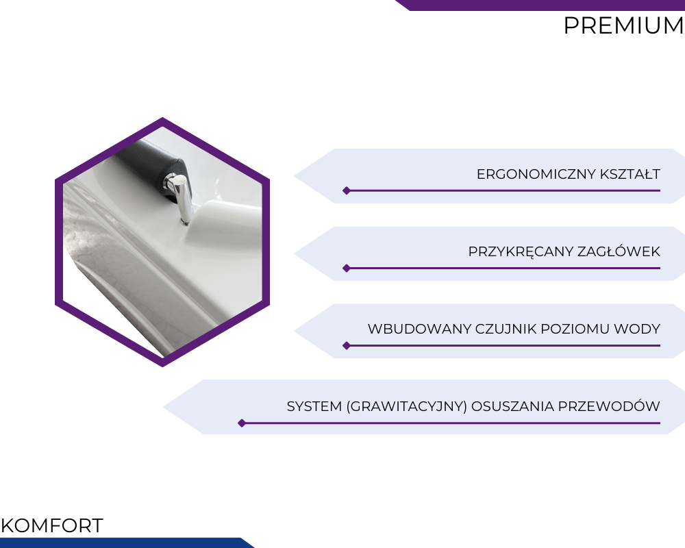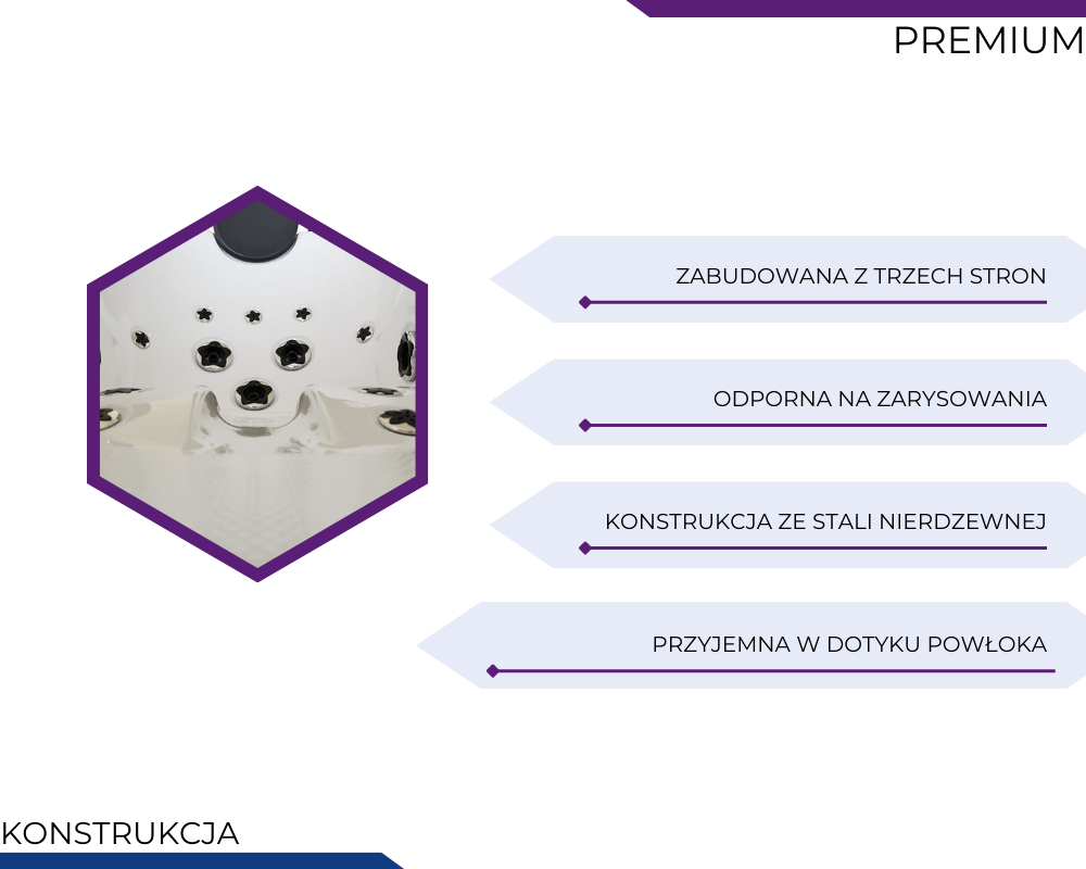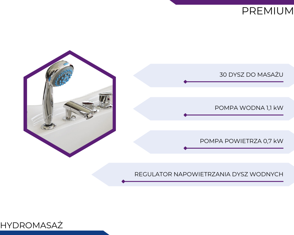 Wanny z hydromasażem PREMIUM to propozycja dla osób, które pragną połączyć luksus, technologię i wyjątkowy komfort w jednym rozwiązaniu. Każdy element – od solidnej konstrukcji ze stali nierdzewnej, przez zaawansowane systemy masażu, po nastrojowe oświetlenie i funkcje audio – został zaprojektowany z myślą o maksymalnym relaksie i długotrwałej satysfakcji z użytkowania. To wybór, który podnosi standard codziennej kąpieli, zamieniając ją w prawdziwy rytuał odprężenia i regeneracji. Wanny PREMIUM to inwestycja w jakość, estetykę i komfort, które każdego dnia wprowadzają do łazienki atmosferę domowego spa.