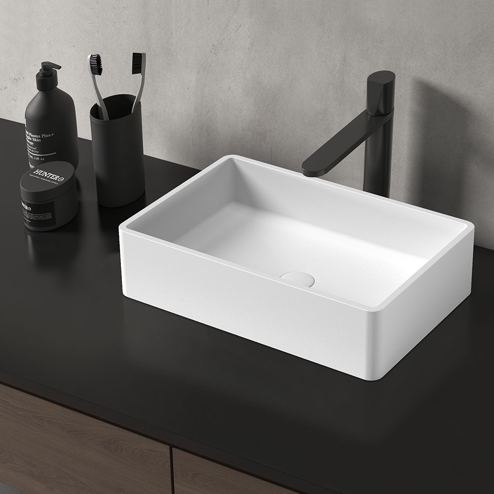 Umywalka nablatowa z kamienia syntetycznego prostokątna UM-0087 60X40X15CM