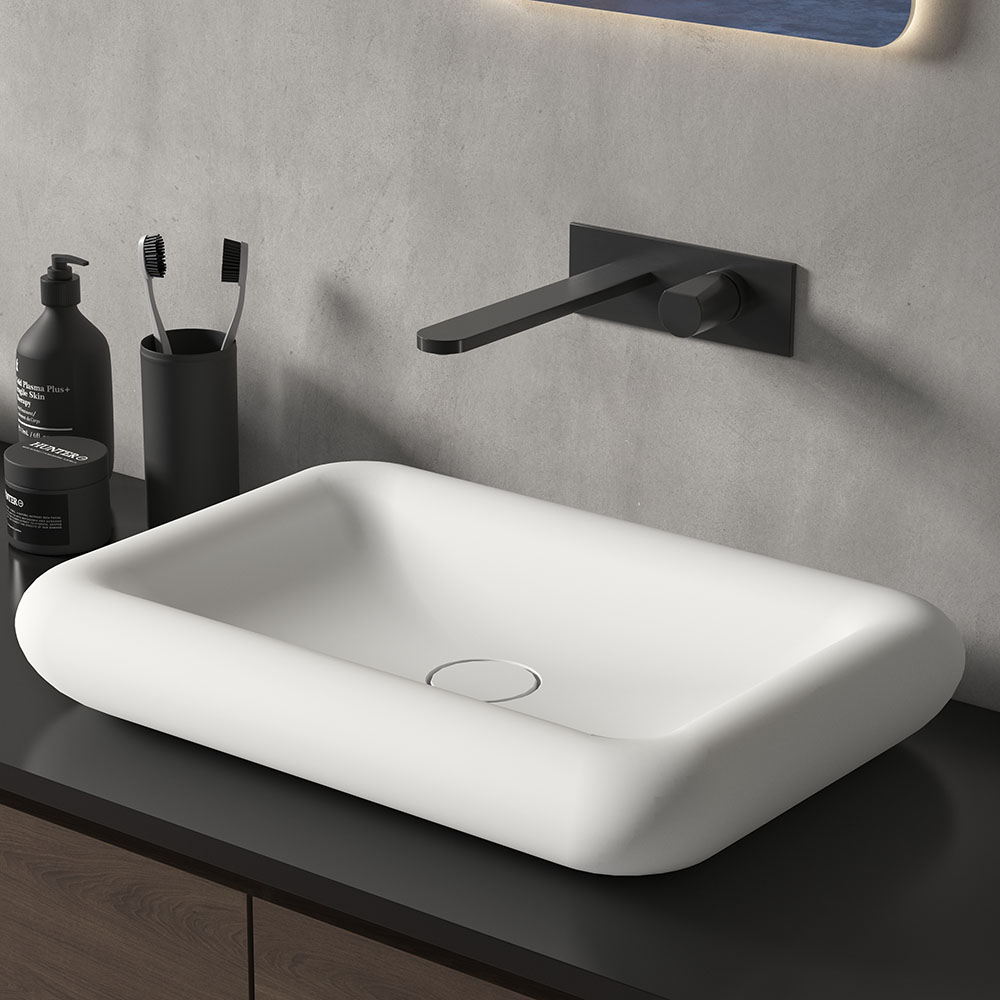 Umywalka nablatowa z kamienia syntetycznego prostokątna UM-0280 60X42X10CM