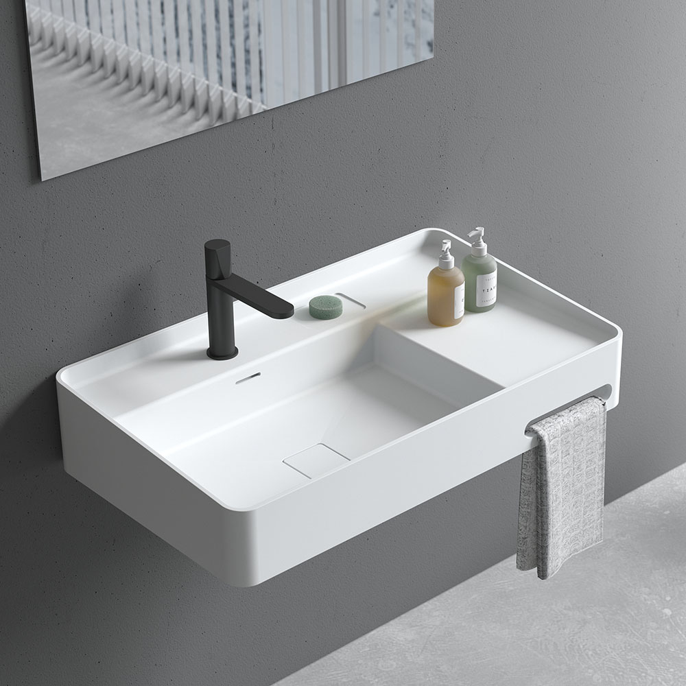 Umywalka ścienna z kamienia syntetycznego prostokątna UM-0239 80X46X19CM