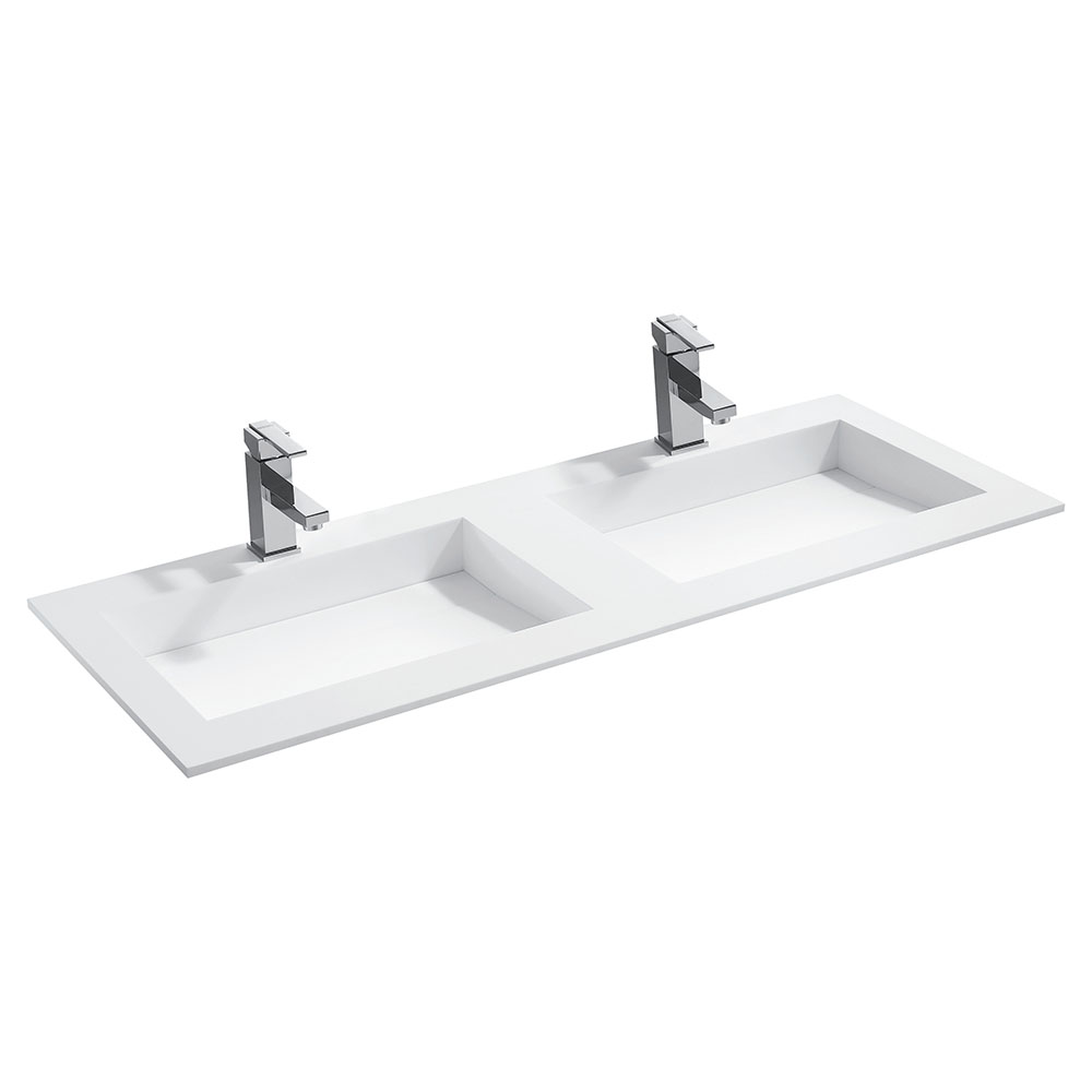 Umywalka wpuszczana dwukomorowa z kamienia syntetycznego prostokątna UM-0063 120X46X11CM