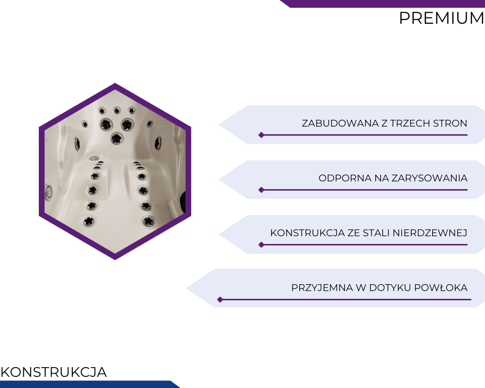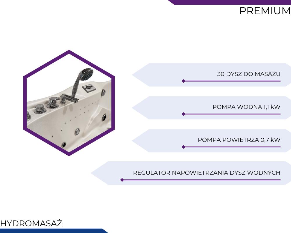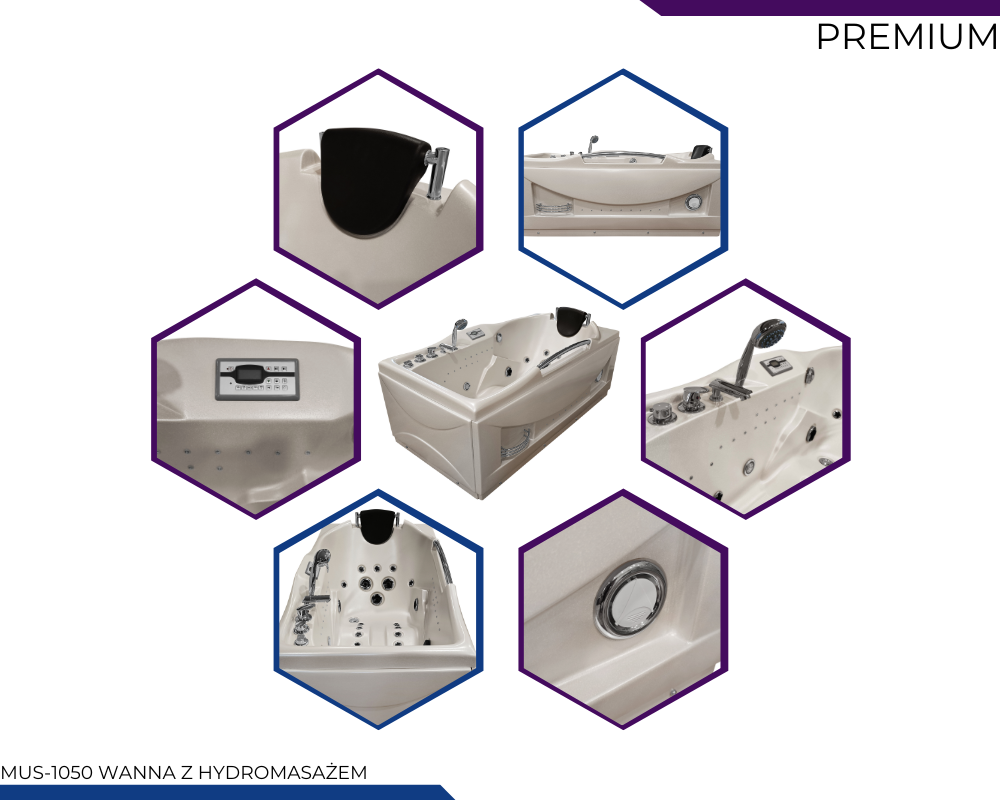 Wanna z hydromasażem łazienkowa SPA MUS-1050 #21 PRAWA 174x88x70cm