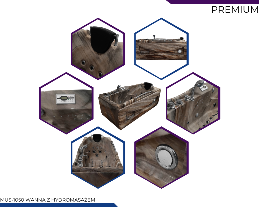 Wanna z hydromasażem łazienkowa SPA MUS-1050 #23 PRAWA 174x88x70cm