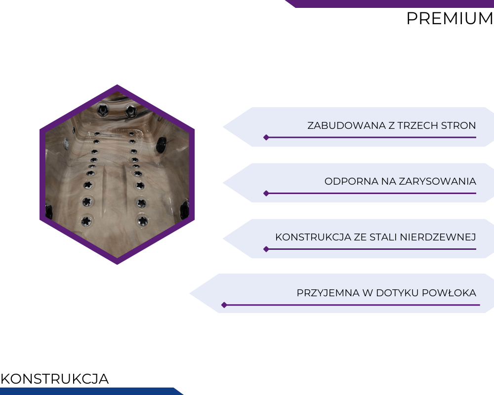 Światłowody: 32 szt. (siedem rodzajów kolorów) w tym: 23 w środku wanny + 9 szt. na froncie wanny)