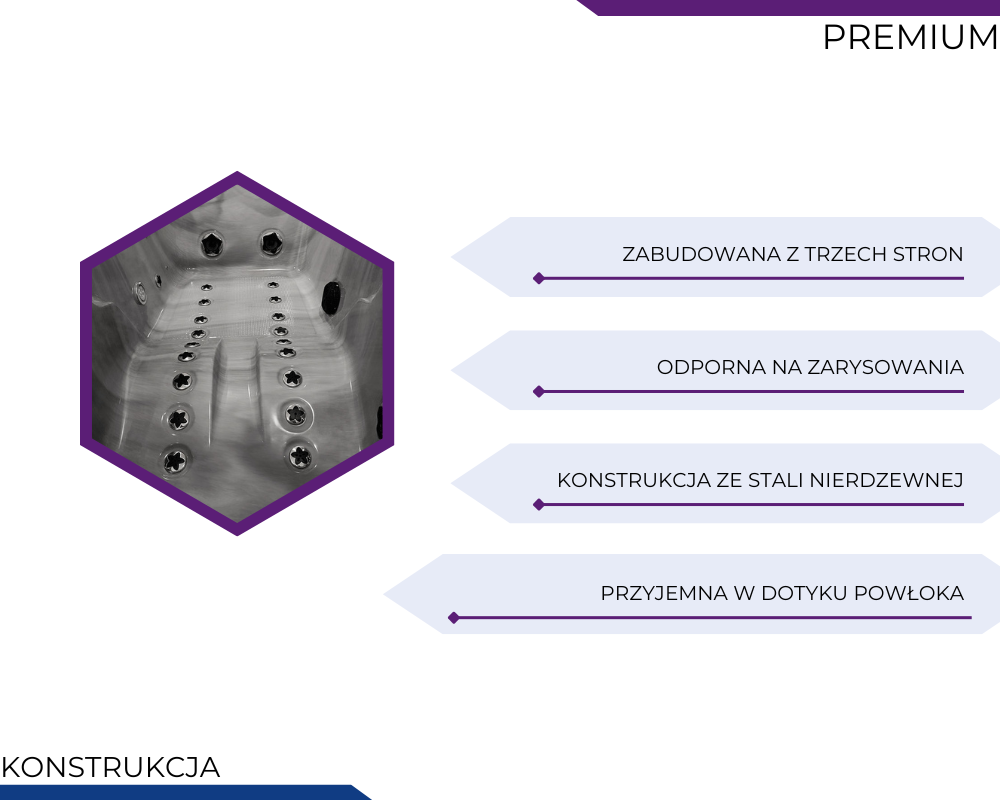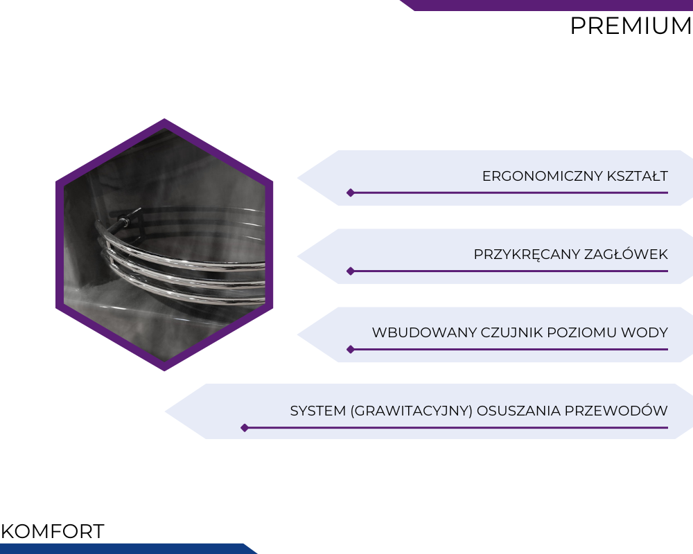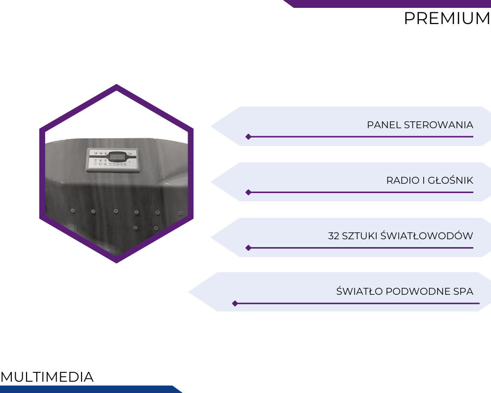 Wanny z hydromasażem PREMIUM to propozycja dla osób, które pragną połączyć luksus, technologię i wyjątkowy komfort w jednym rozwiązaniu. Każdy element – od solidnej konstrukcji ze stali nierdzewnej, przez zaawansowane systemy masażu, po nastrojowe oświetlenie i funkcje audio – został zaprojektowany z myślą o maksymalnym relaksie i długotrwałej satysfakcji z użytkowania. To wybór, który podnosi standard codziennej kąpieli, zamieniając ją w prawdziwy rytuał odprężenia i regeneracji. Wanny PREMIUM to inwestycja w jakość, estetykę i komfort, które każdego dnia wprowadzają do łazienki atmosferę domowego spa.