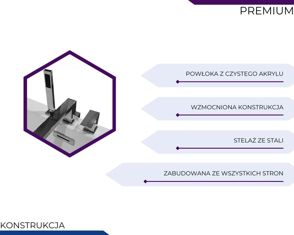 Półka na kosmetyki: tak (na boku przylegającym do ściany)