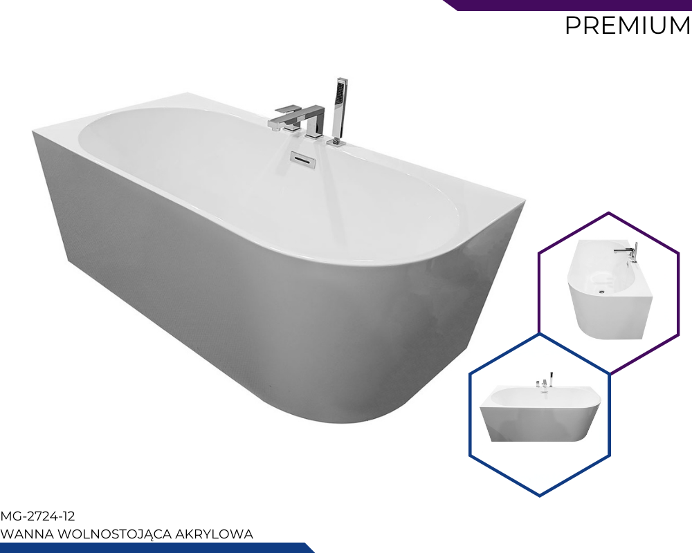 WG-2724-12-170 LEWA Wanna wolnostojąca przyścienna z baterią chromowaną 170X75X59CM