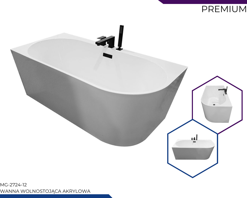 WG-2724-12-170 LEWA Wanna wolnostojąca przyścienna z baterią czarną 170X75X59CM