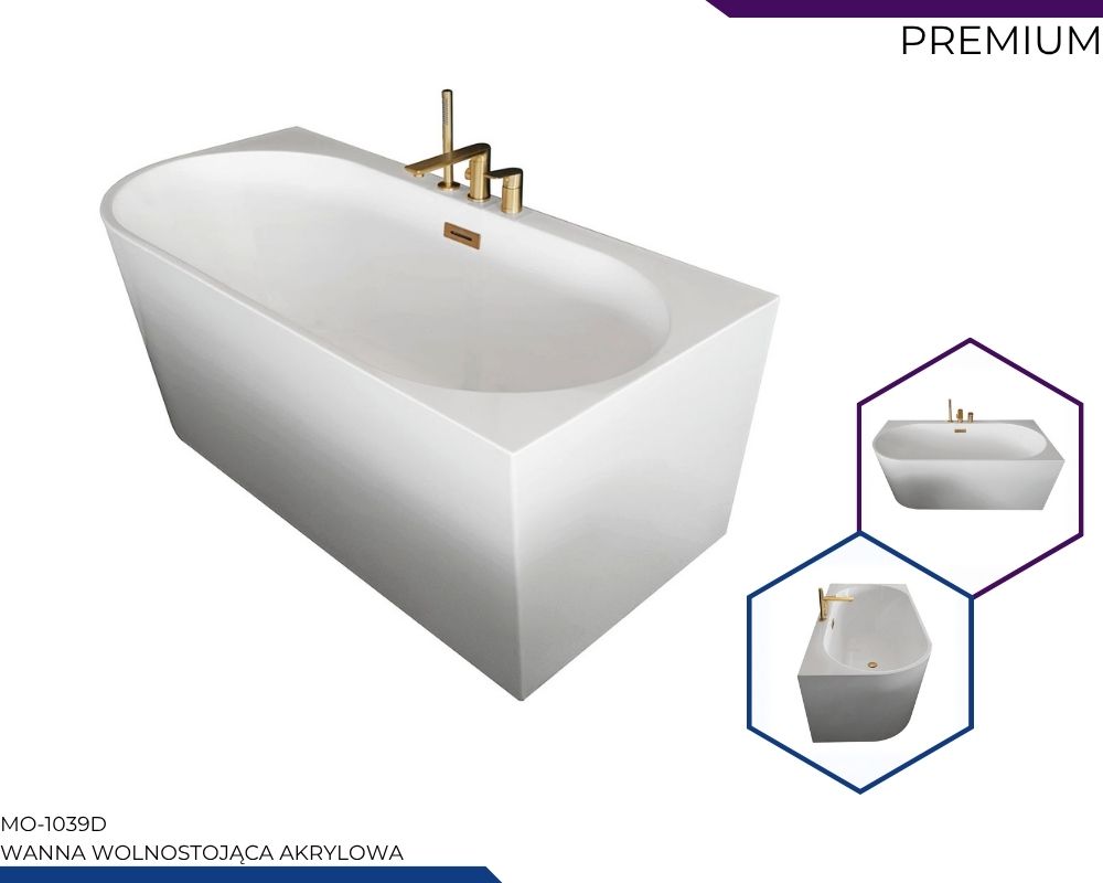 WG-2724-19-160 PRAWA Wanna wolnostojąca przyścienna z baterią złotą 160X75X59CM
